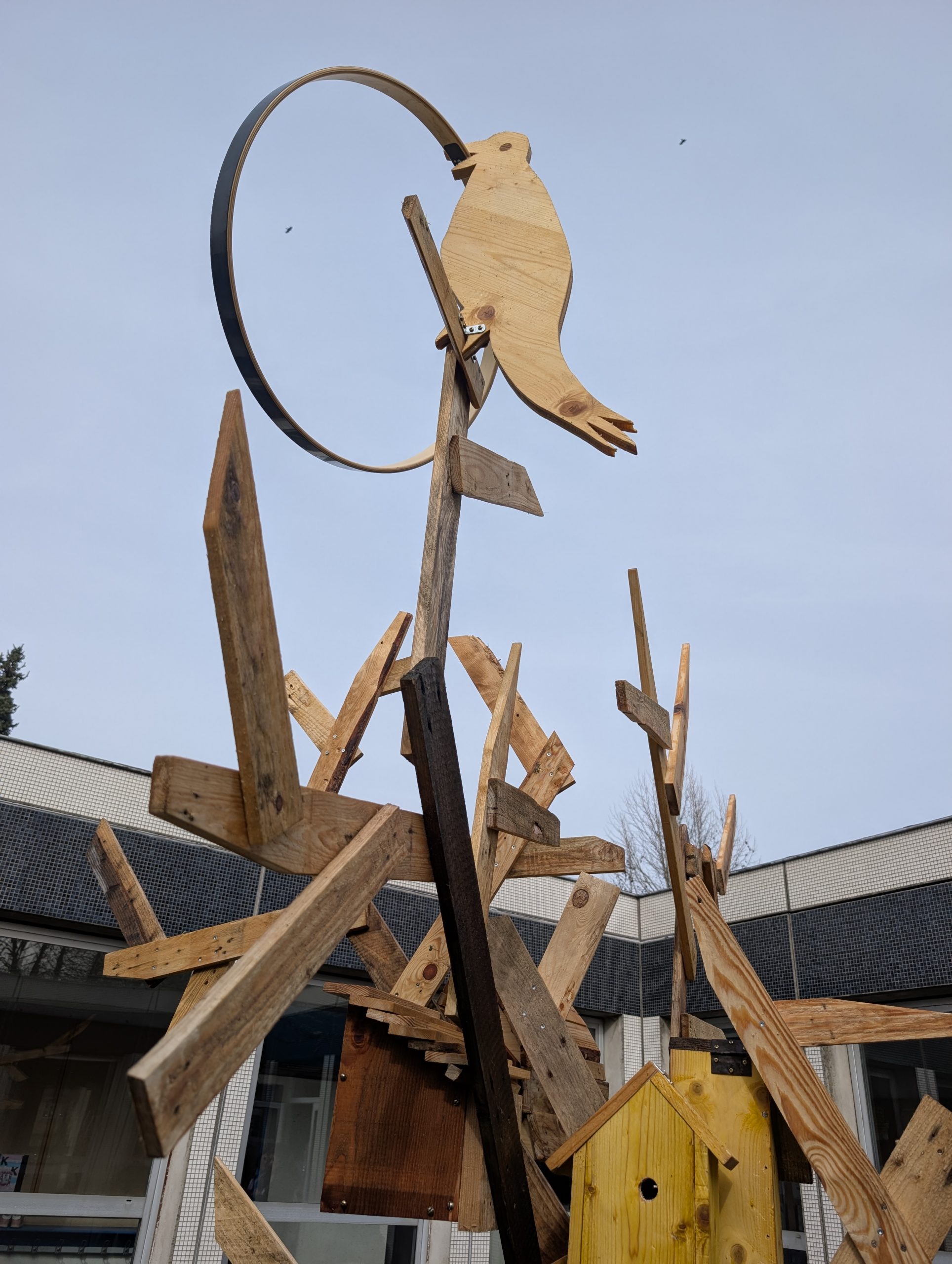 4 jours, 80 enfants de 3 à 5 ans, un corbeau, un renard, un loup, un mouton , un arbres, 4 nichoirs, du bois et beaucoup d’huile, merci à la ville et l’école de Talange !
